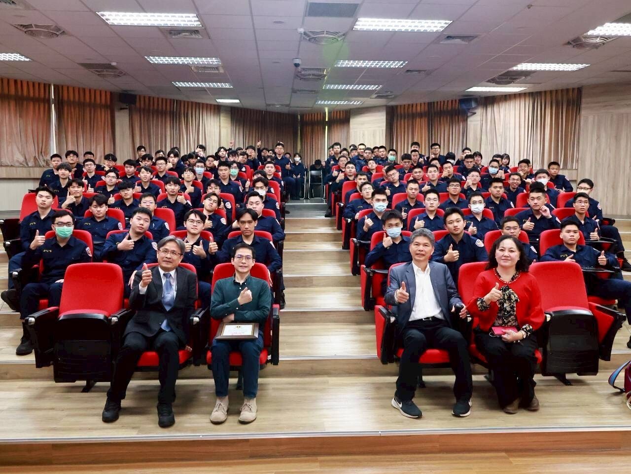 | 主講人、交通科師長與全體同學合照,活動圓滿完成 |