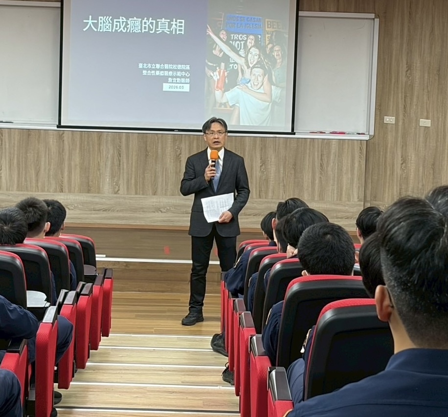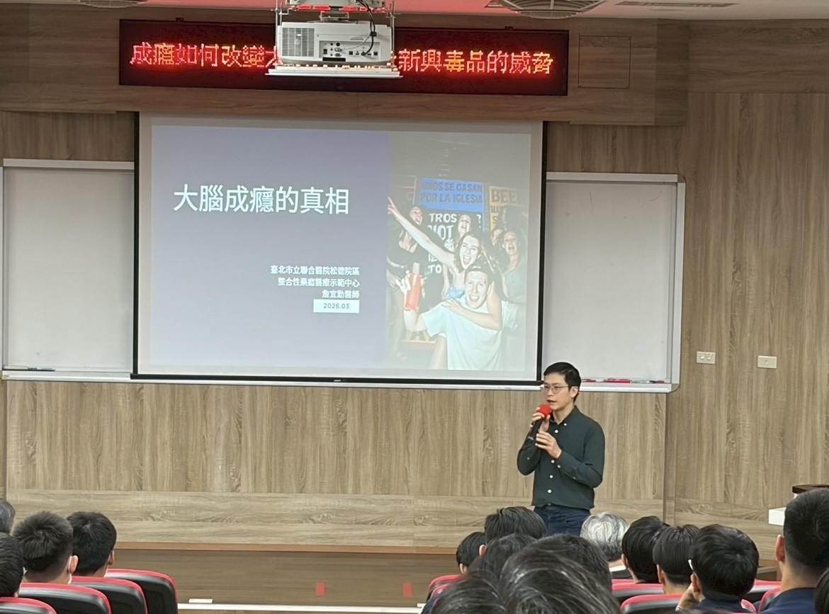 主講者:臺北市立聯合醫院松德院區整合性藥癮醫療示範中心 詹宜勳醫師 本校交通管理科於115年3月16日上午10時,於日新101會議室舉行專題演講,以成癮如何危害大腦與行為及新興毒品的威脅為題,由台北市立聯合醫院詹宜勳醫師進行毒品危害專題演講。 |